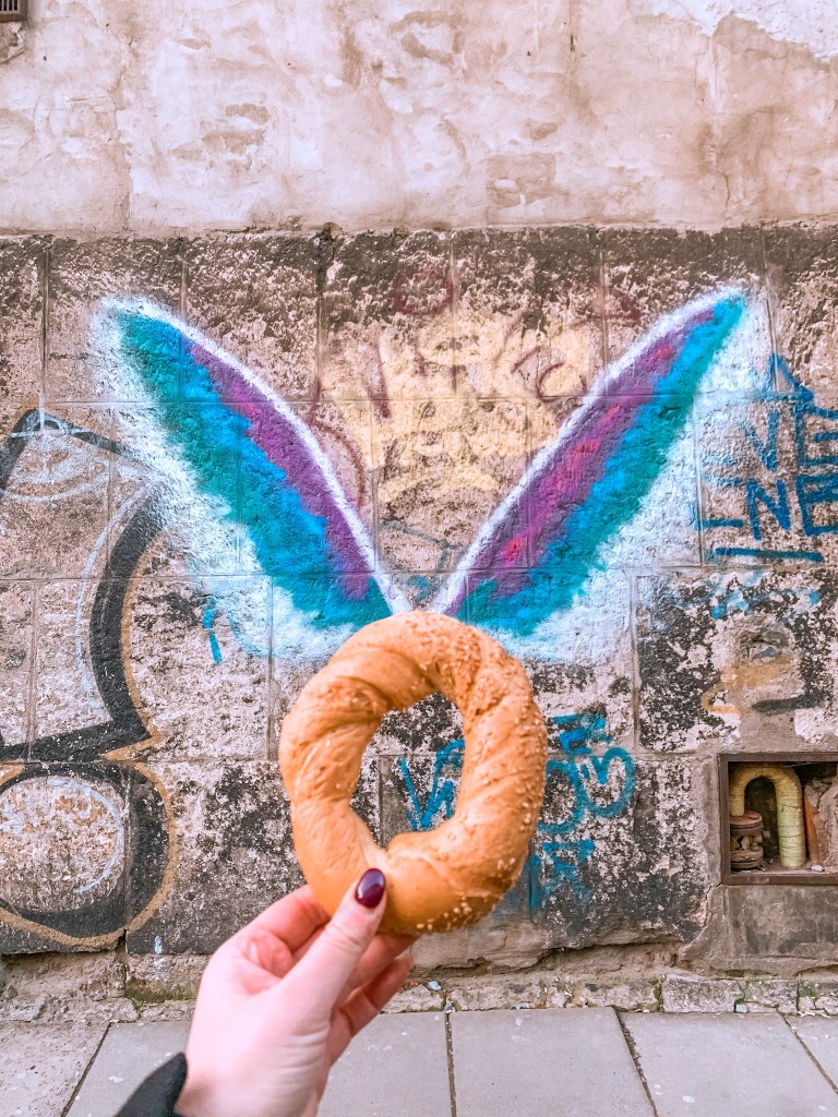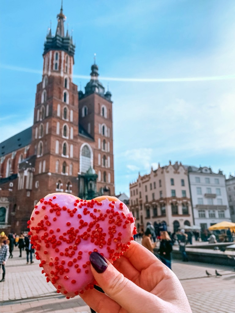 The popular pretzels, called Obwarzanek krakowski, are iconic for Krakow. You can buy them from small blue carts around the city. They are loved by both locals and tourists. And very picturesque!